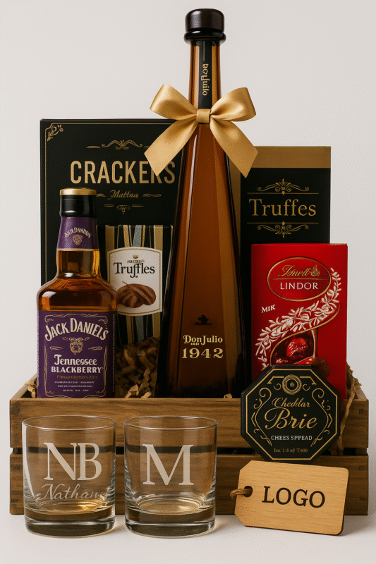 Personal Touches: Engraved bottles, personalized cards, or company branding.